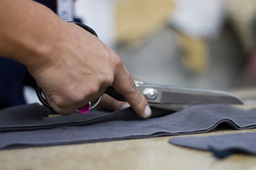 The pre-washed fabric for our organic clothing comes into their workshop where it is expertly cut by artisans like Jonny. Jonny started as an apprentice, demonstrated his incredible abilities and steady hand, and was promoted to lead cutter two years later.