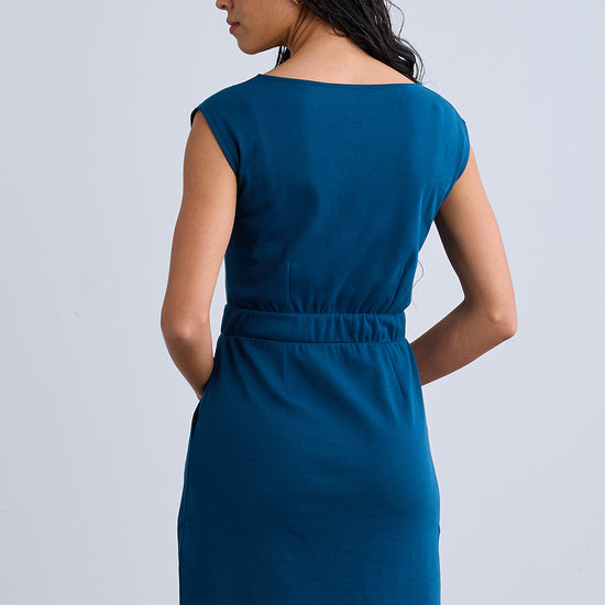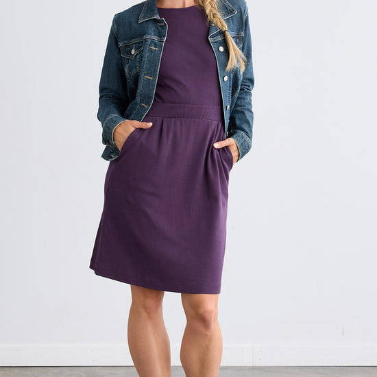 This cap sleeve dress with pockets is made from luxuriously soft organic Pima cotton in a durable interlock knit. Designed with a flattering ballet neckline, comfortable elastic waist, and functional pockets. Whether you're heading to work, traveling, or going out to dinner, this dress is your go-to for effortless style and long-lasting comfort.