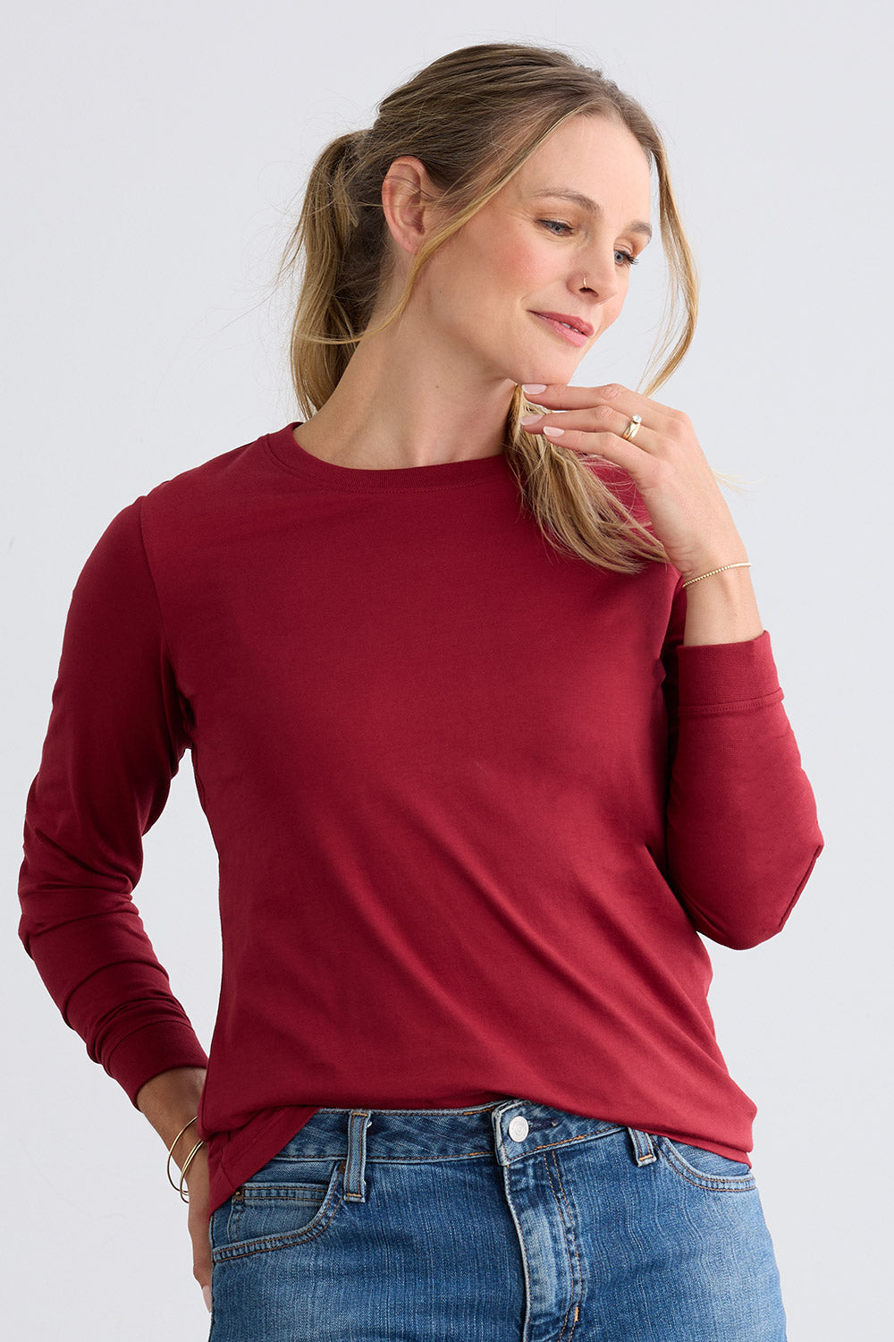 Women's Ultra 100% Organic Cotton Relaxed Long Sleeve Crew Neck T-Shirt