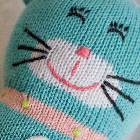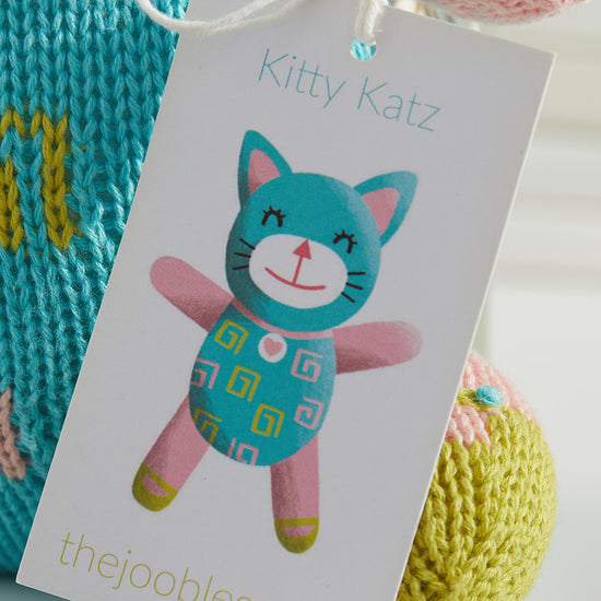Kitty Katz is fiercely independent and likes to remind her Joobles friends that alone time can be just as satisfying as together time. She enjoys listening to music with her ear buds - she also loves how they feel in her ears - and loves all things outer space. This irresistible organic cotton stuffed animal is destined to be a lovable, lasting companion. So wonderfully squishy and soft, it's hard to let go! And full of wholesome goodness from farm to toy box.