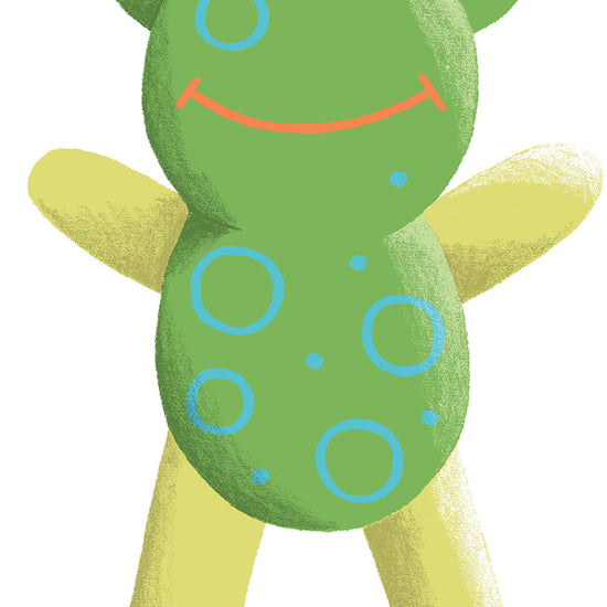 Flop the Frog is a bit of a busy body; so active and hard working he sometimes has a hard time sitting still. But when it's time to relax, Flop says there's nothing like a hike on a warm night to enjoy the symphony of crickets. This irresistible organic cotton stuffed animal is destined to be a lovable, lasting companion. So wonderfully squishy and soft, it's hard to let go! And full of wholesome goodness from farm to toy box.