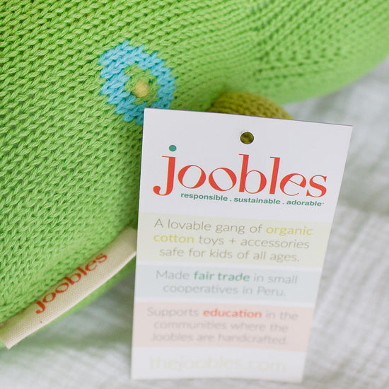 All of the good stuff, none of the bad. Just like Fair Indigo's clothing, our Joobles organic stuffed animals are made with pure Peruvian organic cotton - in this case Tanguis, a close cousin of famed Pima cotton, with a fiber thickness better suited for stuffed animals. No pesticides or harmful chemicals are used in the cotton. Earth-friendly. Kid-friendly.