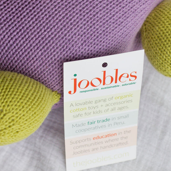 Icy is well known as the Joobles' science buff. If you can't find her, it's probably because she's hiding behind a book or the latest science magazine. This irresistible organic cotton stuffed animal is destined to be a lovable, lasting companion. So wonderfully squishy and soft, it's hard to let go! And full of wholesome goodness from farm to toy box.