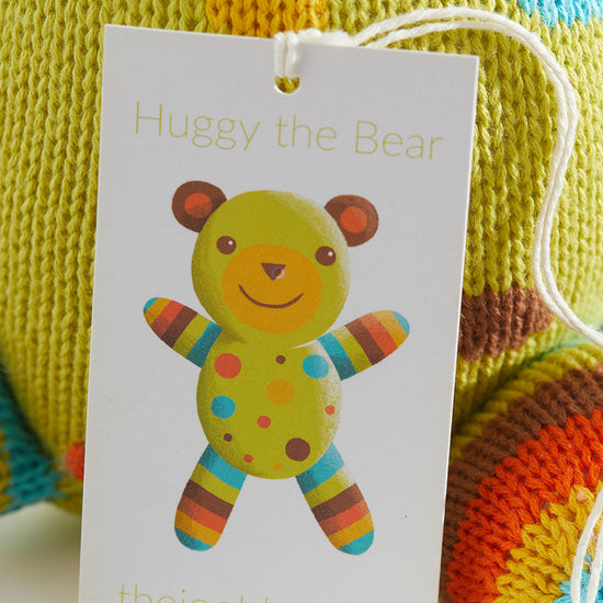 Huggy the Bear is known to the rest of the Joobles gang as everyone's BFF, always encouraging everyone to be their best. Huggy also loves cooking and has been known to whip up a campfire feast for the entire Joobles crew. This irresistible organic cotton stuffed animal is destined to be a lovable, lasting companion. So wonderfully squishy and soft, it's hard to let go! And full of wholesome goodness from farm to toy box.