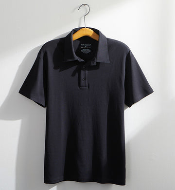 Our signature all-cotton interlock fabric is ingeniously constructed to provide a level of stretch you'd normally only find in fabrics made with spandex. It's called mechanical stretch, achieved by the meticulously designed structure of the yarns. The fabric is washed before it's cut and sewn, an uncommon but very beneficial step. It not only ensures your clothing won't shrink, but also prevents puckering and twisting around seams that often happens in your dryer when sewing threads shrink but fabric doesn't.