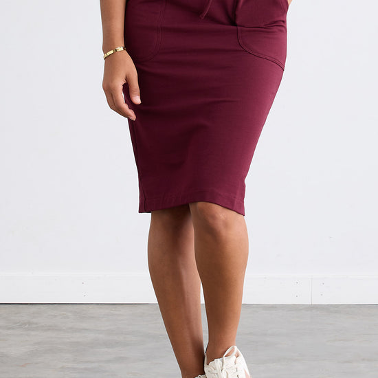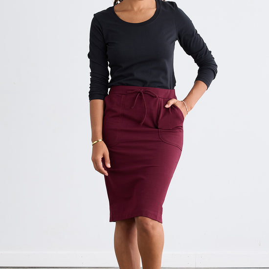 Instant relaxation, but ready for any activity, the French Terry Midi Skirt with pockets is the perfect addition to your sustainable wardrobe. The organic French terry fabric is extraordinarily comfortable, smooth, and gently draping. Features a comfy elastic drawstring waistband and roomy pockets.