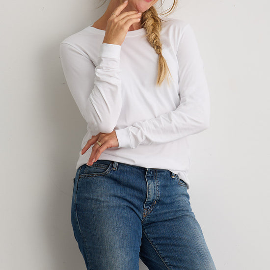 Sustainably made. Seriously durable. This midweight long sleeve tee is crafted from 100% organic Pima cotton for a feel-good fit that's gentle on the planet and built to last. With its clean lines, sturdy fabric, and relaxed fit, this long sleeve crew neck tee brings effortless style and everyday comfort together in one elevated essential.