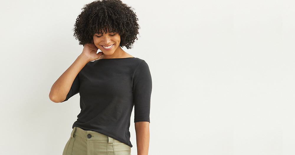 Women's Organic Elbow Sleeve Wide Scoop Neck Tee